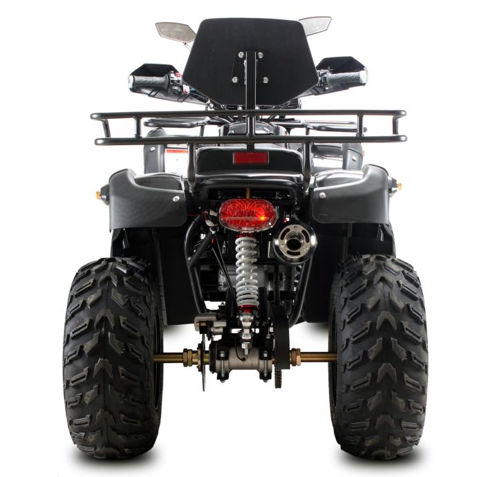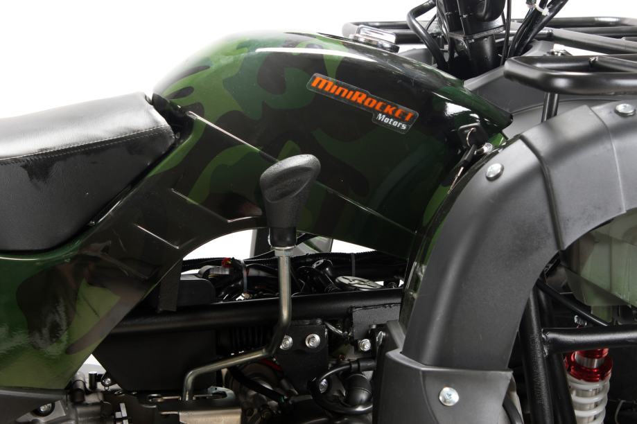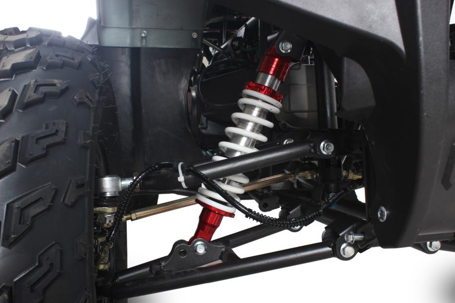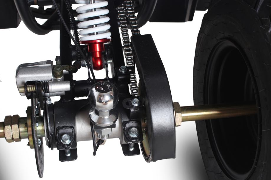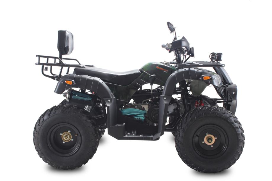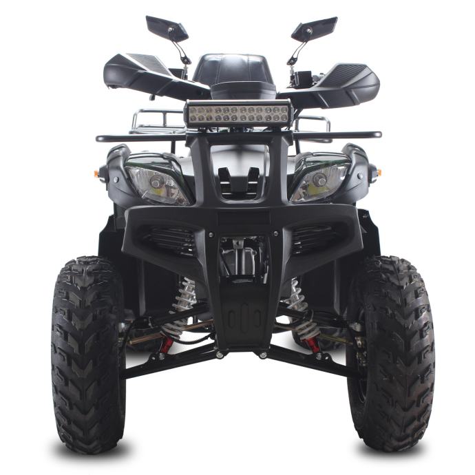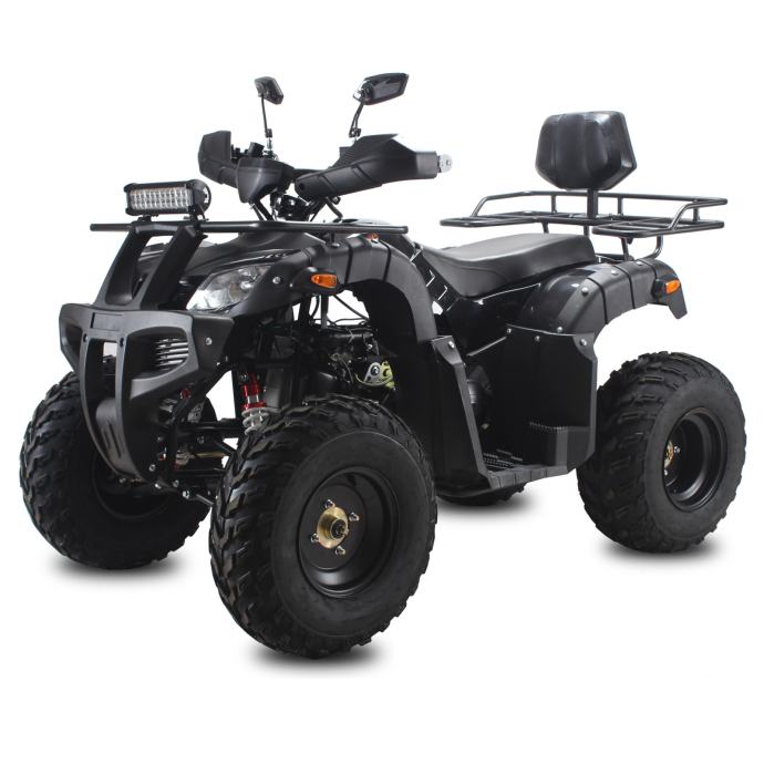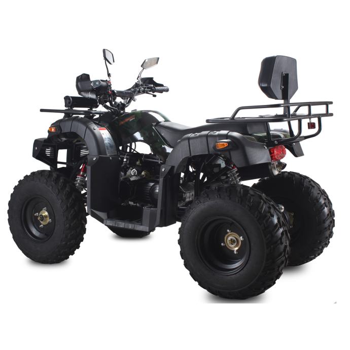 Hummer II 150cc ali 200cc AVTOMATIK, z nosilnostjo 160 kg, prestavljanje samo naprej/nazaj. Opremljen je z velikimi 10" kolesi, varnostnimi okvirji, ščitniki verige, lučmi, električnim zaganjalnikom, sprednjimi in zadnjimi nosilci, športnim izpuhom, ročnim varovalom, visokokakovostnim vzmetenjem ter sprednjimi in zadnjimi hidravličnimi zavorami. Primeren je za otroke in odrasle.