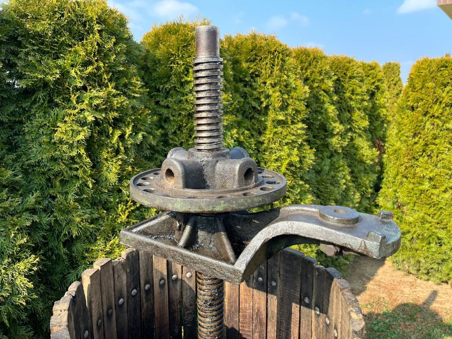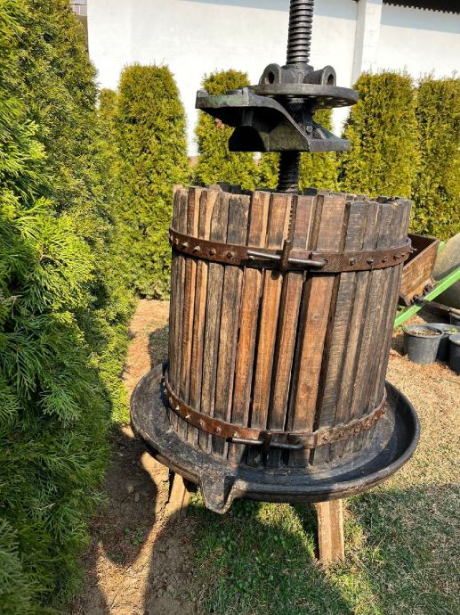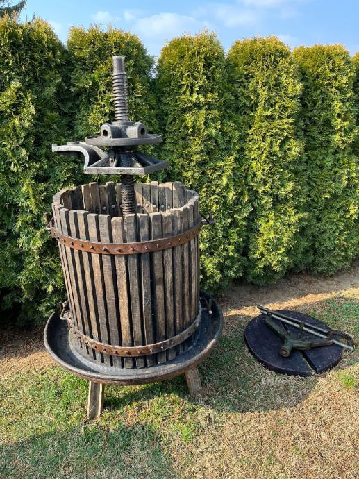 Preša ima vso pripadajočo opremo, je masivna in je litoželezna.