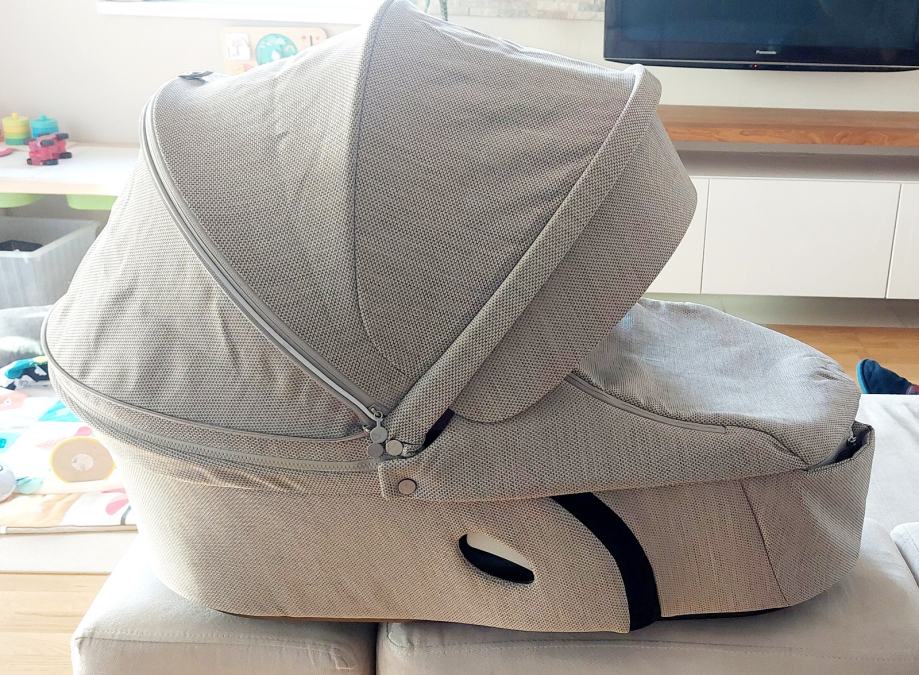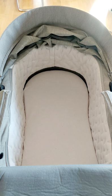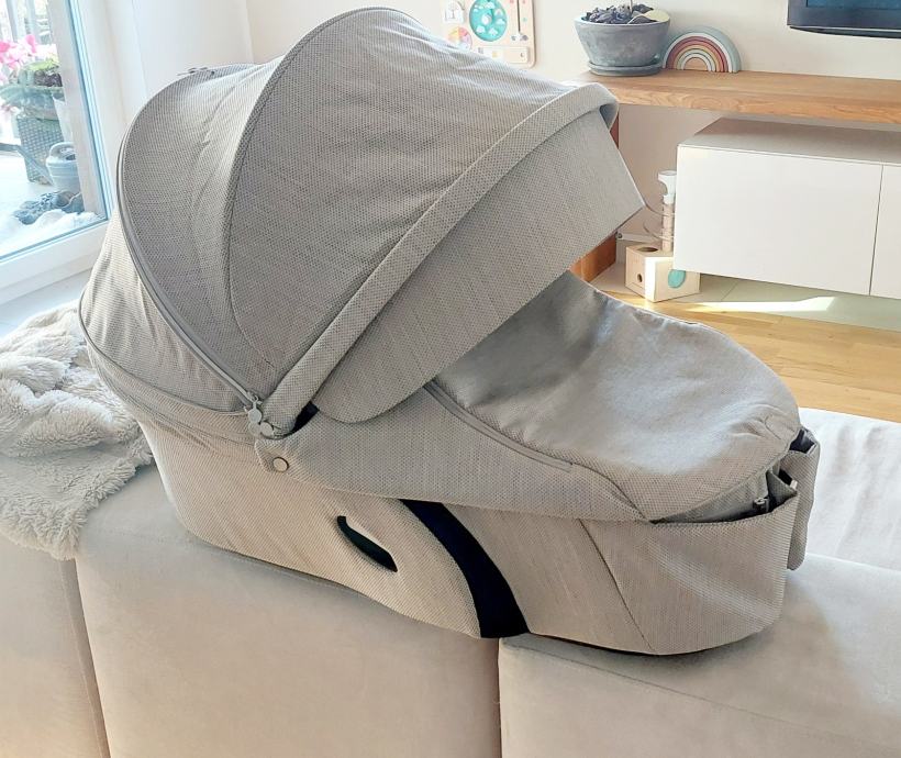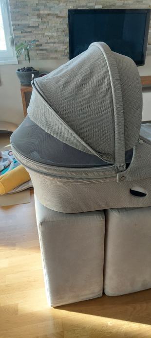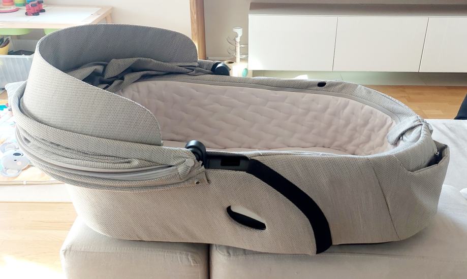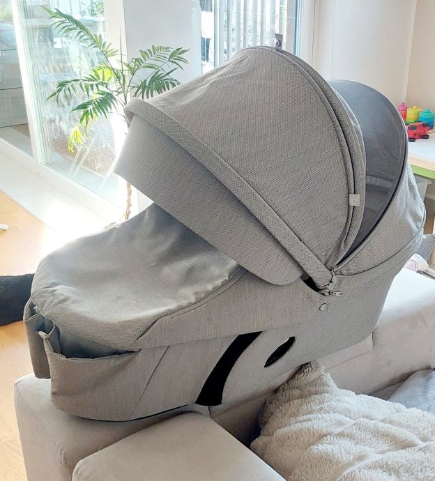 Prodam izjemno lepo ohranjeno Stokke košaro v melirano sivi barvi iz debelejšega tekstila.