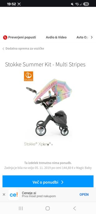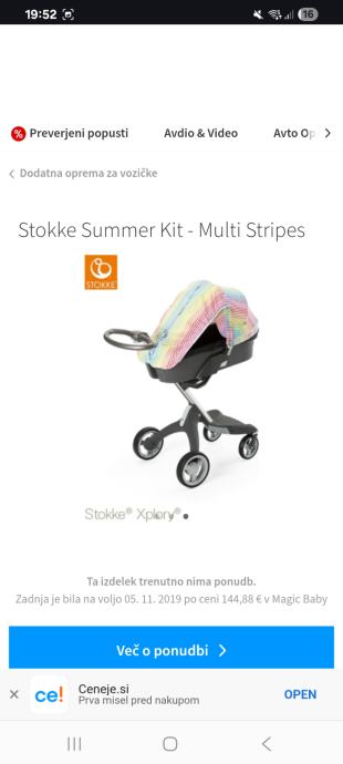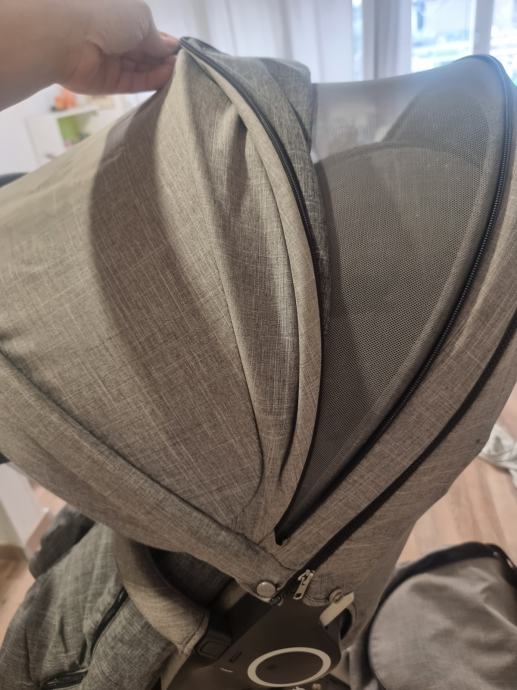 Prodamo voziček stokke xplory s košaro za novorojenčka, sedežem za od 6 meseca dalje, vložkom za novorojenčka in ogromno dodatne opreme. Na dnu ma veliko snemljivo vrečo za stvari in nakupe, ki res drži težo, ni kot pri naketerih vozičkih, ko se to potem strga in odpade. Vrečo se da tudi odstraniti. Dodamo zimsko spalno vrečo in muf za gretje rok na ročaju. Prav tako dodamo poletni set z zračno podlogo in strehico z mrežo, da ni vroče. Voziček je srednje ohranjen, opisujem realno stanje, če pričakujete kot novega, potem ni primeren za vas, je pa voziček zelo kvaliteten in uporaben, lahek za zložit. Napake na vozičku so: odlomljen delček, kjer se nastavi držalo za pijačo, kot je na sliki ki pa ga je treba vedno dol jemat, ko zlagaš voziček, tako da nam je ko smo ga zložili s tem vred odpadel, sicer pa držala nismo uporabljali, ker ni bilo prakticno vednk snemat in dajat nazaj gor. Zraven vozička je bila previjalna torba, katere zadrga se je na eni strani pokvarila, se jo da vseeno zapret in jo lahko priložim zraven, lahko se da zadrgo popravit in bo kot nova. Na strehici se je znak stokke malo spraskal dol. Vse dele se da zamenjat oziroma dokupit nove, če bi vas motilo, prav tako dodatke, previjalno torbo itd. Je pa res zelo dober sistem, saj se da vse dodatke, poletne in zimske namontirati na oba dela, za novorojenčka in večega otroka, tako da je primeren za vse otročke, rojene poleti in pozimi.prav tako se lahko spreminja višina, naklon, tako da lahko tudi veči otrok, ki ni več v košari ovorojenčka spi v vozičku leže na hrbtu. Tekstilni del ni nikjer strgan, vse dele se sname in opere. Košara za novorojenčke je že spakirana v originalni škatli, zato ni vse na slikah, je pa košara najlepše ohranjena, saj se uporablja le nekaj mesecev. V kolikor bo kdo resno zainteresiran, tudi vse odprem in poslikam.