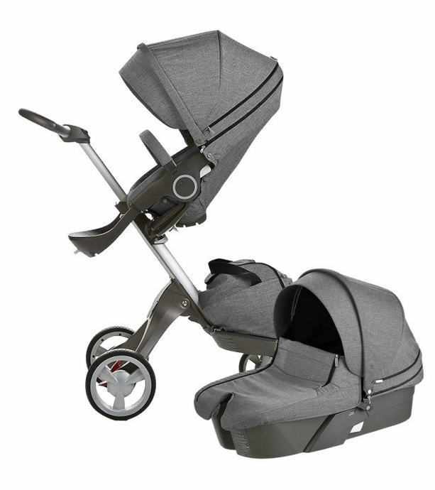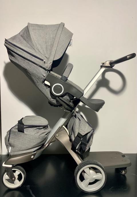 Prodamo otroški voziček Stokke Xplory voziček (košara in športni del) melange grey s sledečo pripadajočo opremo: