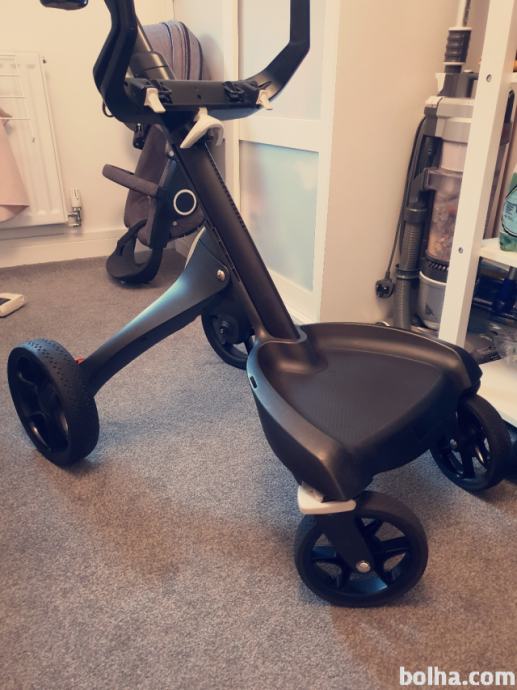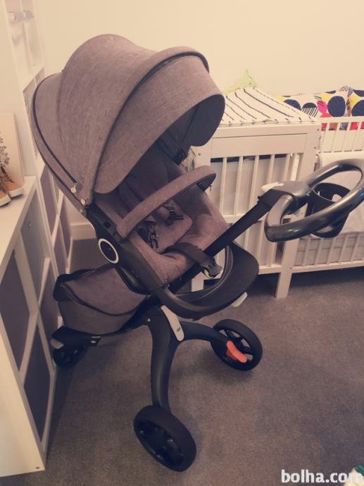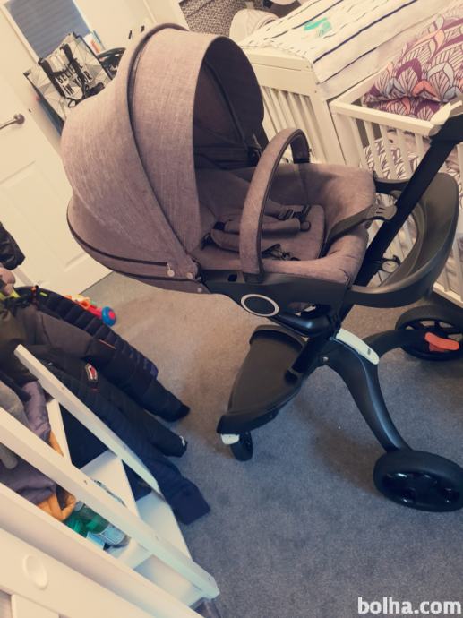 Prodam 1 leto star voziček Stokke Xplory V5 black edition, kupljen Septembra leta 2017, še 4 leta v garanciji. Komplet je sestavljen iz športnega sedeža, vložka za novorojenčka, dežne prevleke, komarnika, dežnika, cup holderja in torbe za nakupovanje. Barva tekstila je black melange. Ves tekstil je snemljiv in pralen.