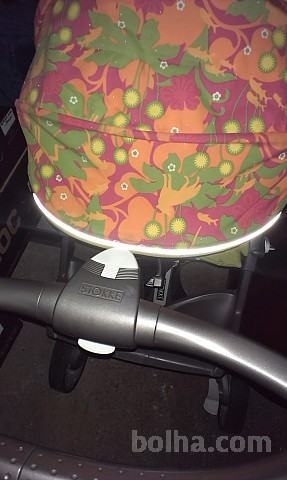 VOZIČEK KOŠARA + ŠPORTNI SEDEŽ + SENČNIK + nakupovalna torba + previjalna podloga + mreža komarnik + prevleka za dež. Barva je zelena olivna. Dodatno še strehica za sedež, etui za stekleničko v forest-olive vzorcu (glej sliko). Vse je odlično ohranjeno. Zaželeni kupci, ki so resnično ljubitelji Stokke filozofije.