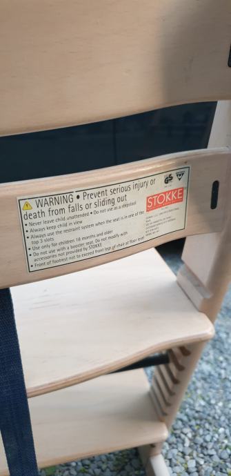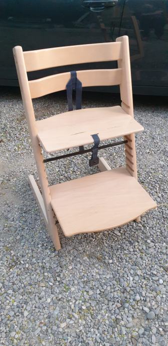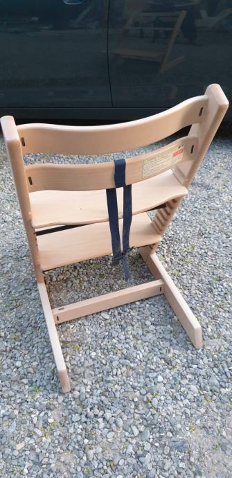 Original stolček Stokke Trip Trap z znaki uporabe, nič pa ni polomljeno ali pokvarjeno.
