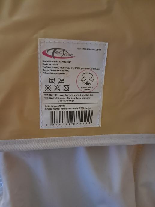 Prodam otroški stolček za hranjenje v rumeni barvi.