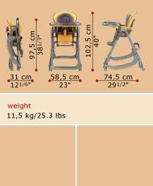 ... za otrokovo starost od enega do treh let. Ima veliko možnosti nastavitve naklona sedeža, višine sedeža, popolne odstranitve pladnja za hranjenje. Če uporabite baterijske vložke postane ta stolček prav uporaben gugalnik, ki se samostojno gunga obenem pa lahko vključite predvajanje asortimana otroških melodij, ki Vašega malčka zlahka zazibljejo v spanec po obroku ali ko je utrujen in zaradi utrujenosti jokajoč težko zaspi.