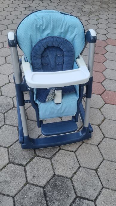 Po simbolični ceni prodam, sicer starejši ampak zelo lepo ohranjen, popolnoma funkcionalen otroški stolček za hranjenje PEG PEREGO s funkcijo gugalnika