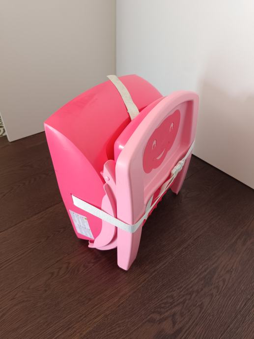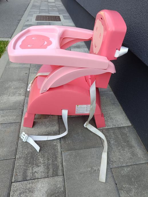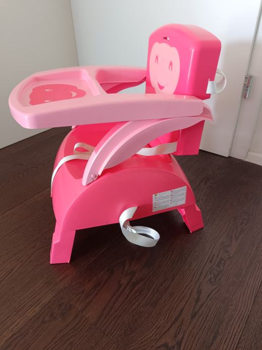 Prenosni stol za hranjenje otroka,lahko je samostoječi ali se ga pritrdi s paščkom na sedež.Zelo praktično za na potovanje,ker se zelo lepo zloži.
