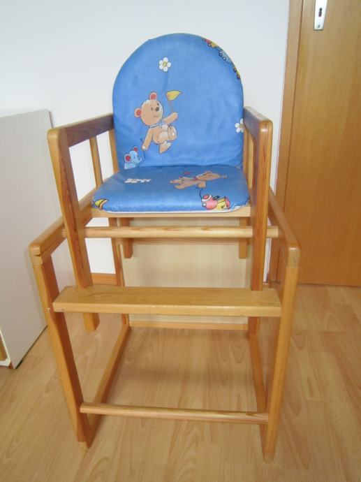 je lepo ohranjen, lesen, kombiniran stol 2 v1 za hranjenje,