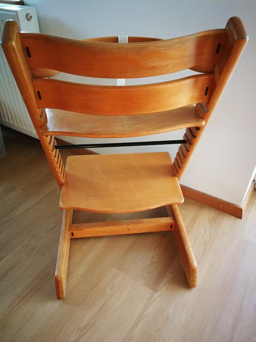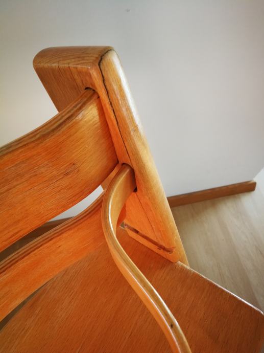 Stolcek, ki ima poleg varovalo. Na levi stranici je razpoka, ki jo je prejsnji lastnik zalepil in ne moti uporabe. Sicer lepo ohranjen.