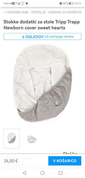 Prodam brezhiben vstavek z prevleko za otroka do 6 mesecev. Original Stokke stolček stane pribl. 135€, prevleka 34€. Prodam v kompletu za 100€.