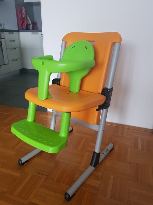 Zaradi masivnega kovinskega ogrodja je ta stolček eden izmed najstabilnejših in udobnejših in zato tudi najvarnejših. S prilagajanjem višine in modularnim sestavljanjem je primeren za otroke od starosti 6 mesecev naprej. Stolček lahko s tem prilagodite tako, da ga uporabite ob klasični jedilni mizi. Tako je otrok v vaši neposredni bližini in se ne počuti ločeno od ostalih.