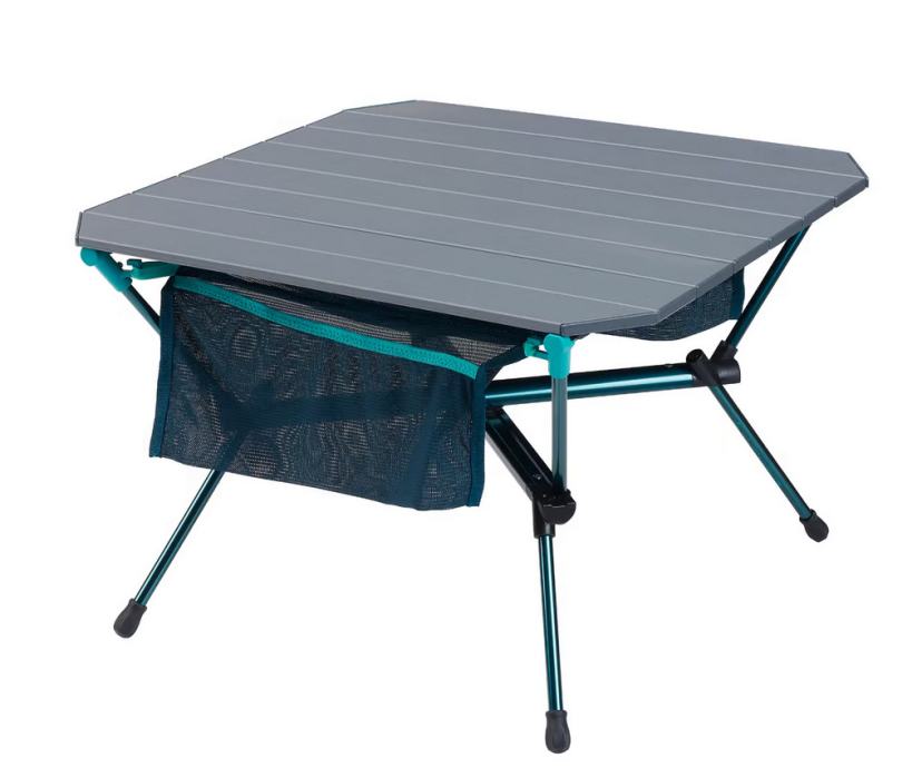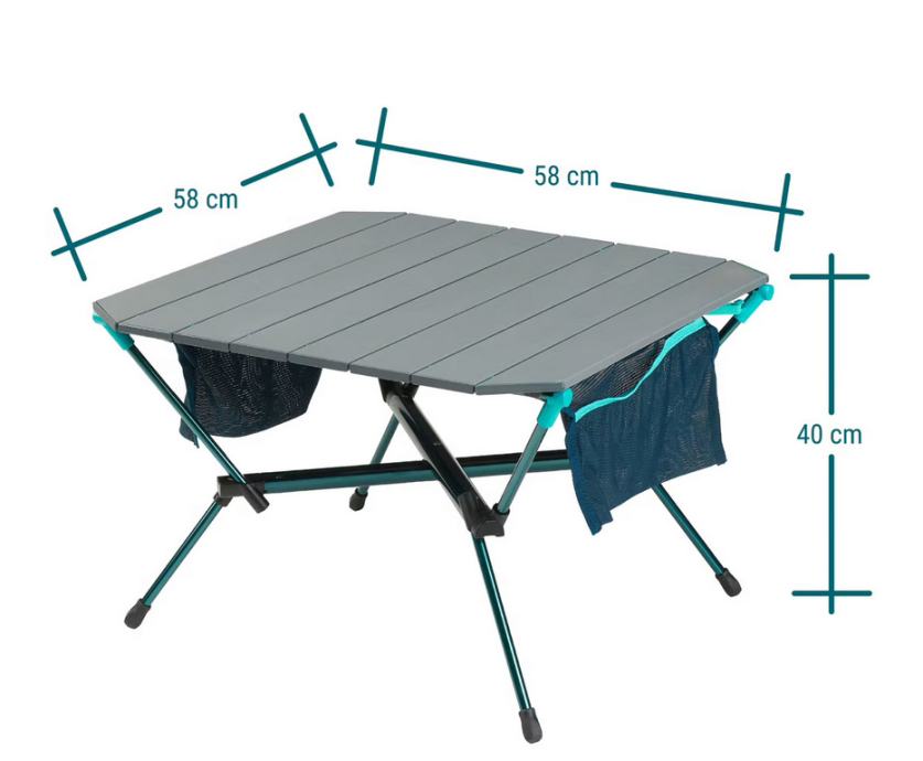 Zložljiva miza je zasnovana za kampiranje. 58 x 58 cm. Udobna višina 40 cm in priložena mreža za shranjevanje. Idealno za obroke na prostem!