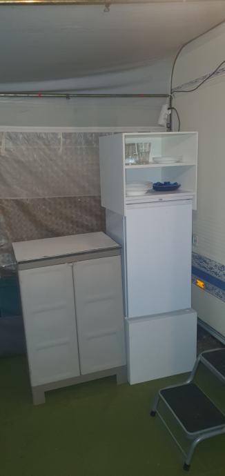 Ugodno prodam komplet za kamp prikolico. Vgradna omara in stojalo za hladilnik + omarica.