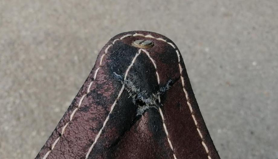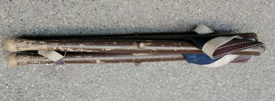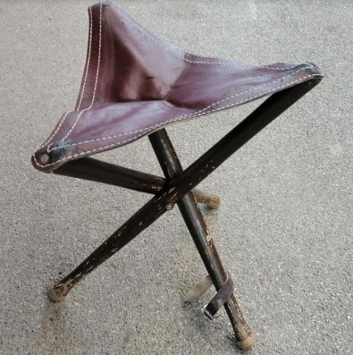 Prodam srednje ohranjen zložljiv usnjen stolček trinožec. Trdne lesene noge in usnjeno sedalo zagotavljajo dobro sedenje. Usnje je na enem delu natrgano zaradi starosti.