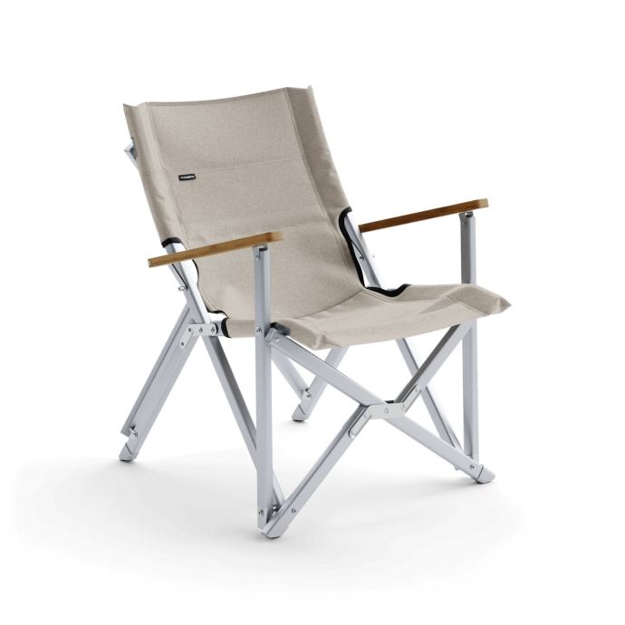 Ta lahek, a robusten stol je izdelan iz vzdržljive 600D tkanine, okvira iz aluminija ter ima naslone za roke iz bukovega lesa, ki dodajo pridih naravne elegance. Na zadnji strani je dodan priročen žep za shranjevanje manjših predmetov, stol pa se enostavno zloži in shrani v priloženo torbo za prenašanje.