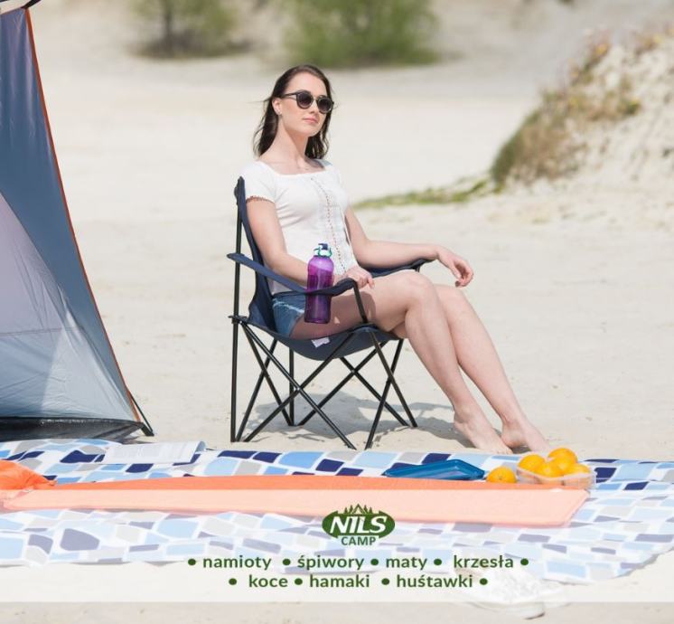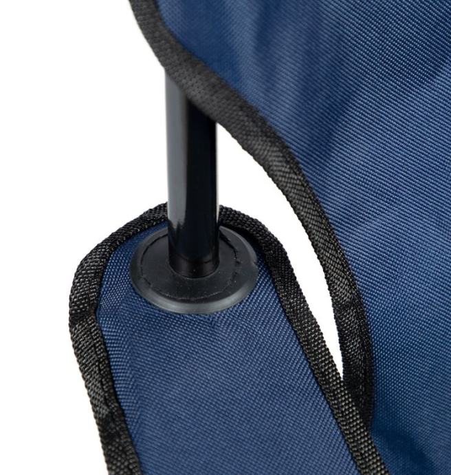 Kamping stol ima naslonjala za roke ter dobro podporo za hrbet. Izdelan je iz trajnega, impregniranega materiala. Primeren za uporabo v kampu, na plaži, na vrtu, med ribolovom, na pikniku. Naslon za roke ima posebno mesto za odlaganje pijače.Zložljiv