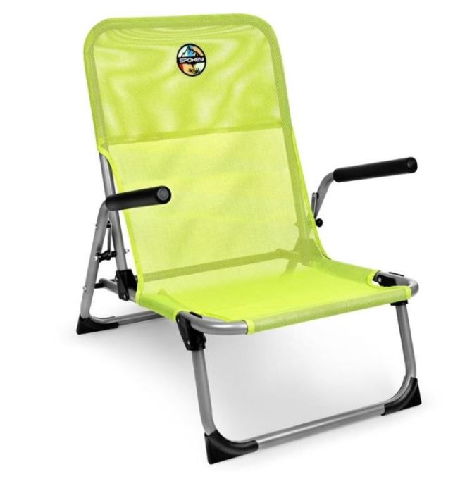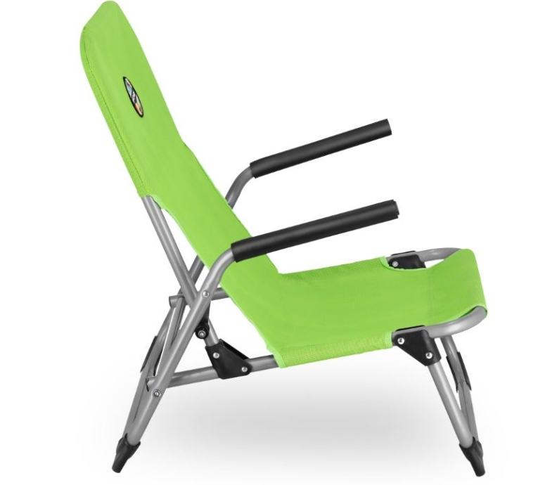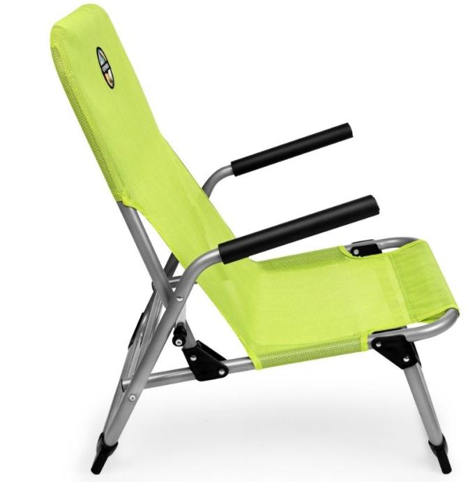 Močan zložljiv stol za kamp, plažo, ribarjenje, piknik, vrt in več. Prenese kar 120 kg teže. Z vgrajenima držali lažje vstanemo. Sedež je narejen iz trpežne poliestrske mreže, ki olajša čiščenje in nudi neverjetno udobje med sedenjem.