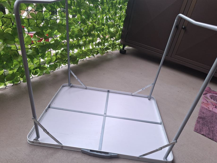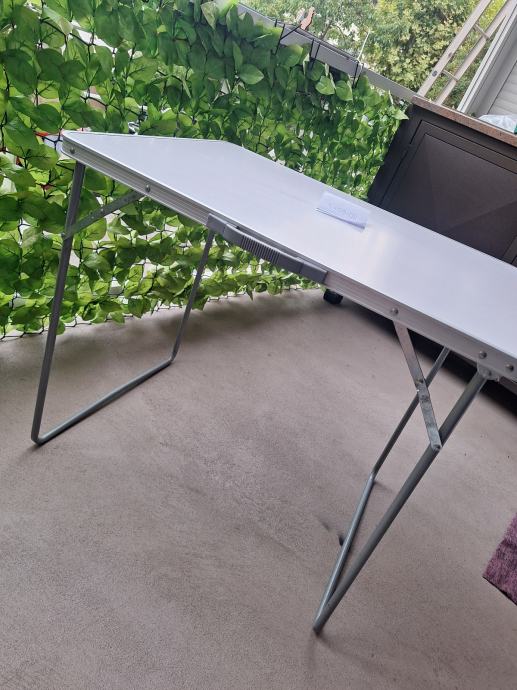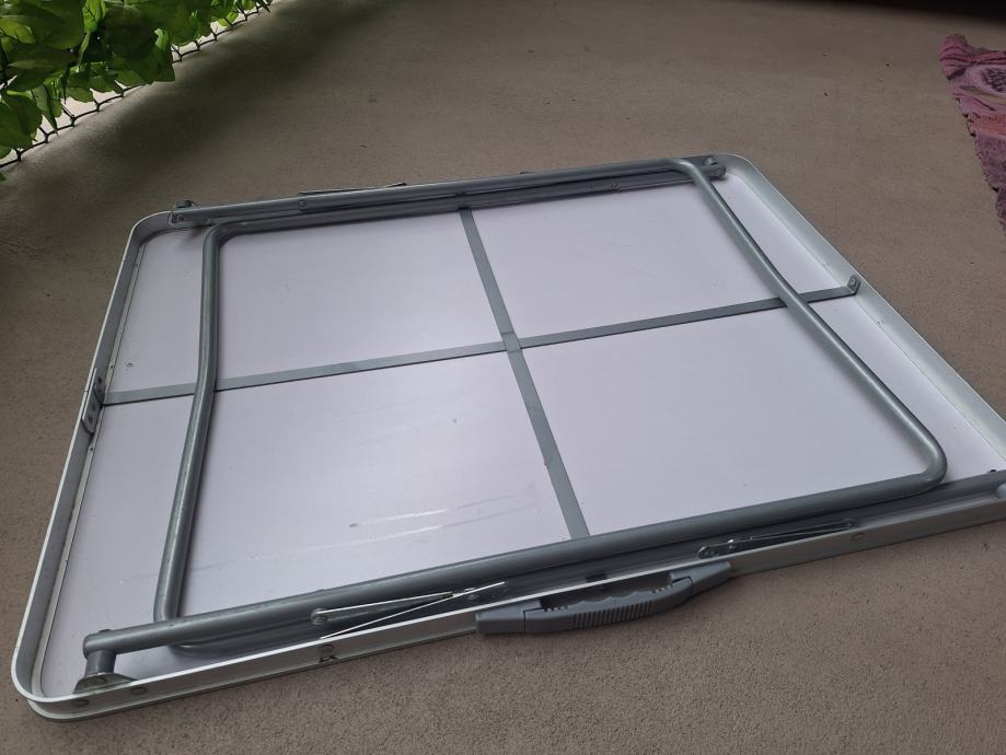 Prodam Zložljiva miza za kampiranje s kovinskim okvirjem 80 x 60 cm , visina postavljene 70 cm, debelina pospravljene mize je 4 cm.