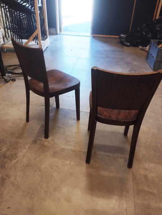Prodam par masivnih stolov. Trdno ogrodje, se ne maje. Eden izmed stolov ima na sedalni površini manjšo poškodbo. Možnost prevzema Žužemberk / Trebnje / Ivančna Gorica. Cena za par.