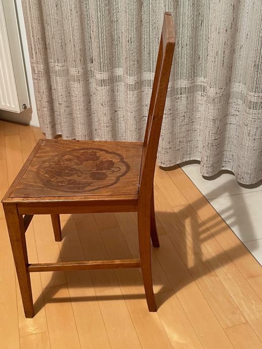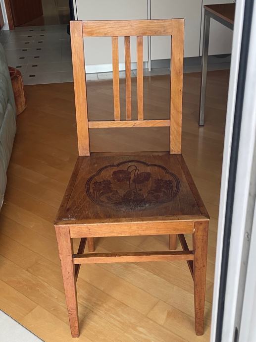 Prodam starinski stol z ornamentom na sedalu.