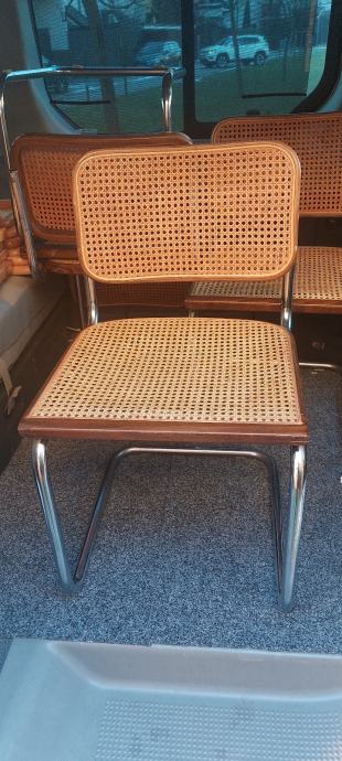 Prodam 6 stolov Cesca. Les in kromirano ogrodje v odličnem stanju, na dveh stolih strgane mrezice.