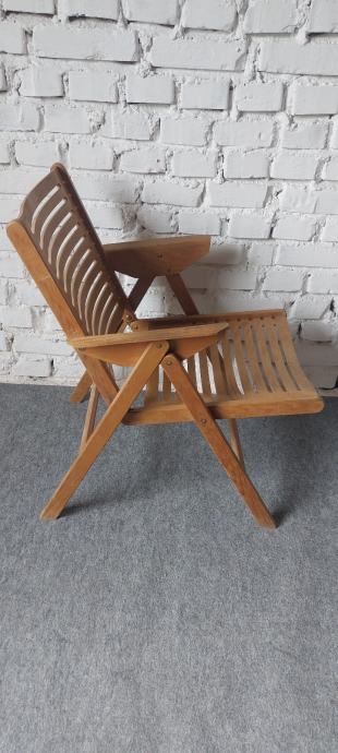 Prodam stol Rex iz 70ih let v barvi bukve, oblikovanje Niko Kralj, proizvodnja Stol Kamnik. Stol je cvrst, stabilen, ima original zakovice in vijeke ter nalepko z logotipom, ima pa povrsinske znake uporabe. Stanje razvidno iz slik.
