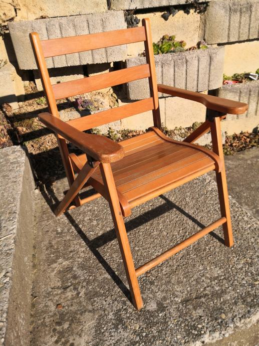 Prodaja se retro starejši lesen stol, lesen zložljiv manjši stolček, stol za otroke, otroški stolček, mere sedala ca 29cm,mere do višine sedala ca 27cm,višina zadaj je ca 54cm,otroški stol,