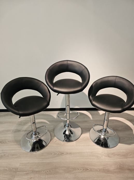 Prodam 3 črne barske stole. Vrtljivi, z možnostjo nastavitve višine. Stari leto in pol, malokrat rabljeni. Cena je za vse 3 kose skupaj.