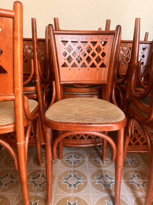 Prodamo 28 kosov lesenih stolov. So zelo lahki in ozki, kar prav pride v manjših jedilnicah (gostilne, kavarne, stanovanja), ampak preverjeno vzdržljivi, kompaktni. Večina njih potrebuje čiščenje. Novo tapeciranje še ni nujno, bi pa vsekakor polepšalo stole.