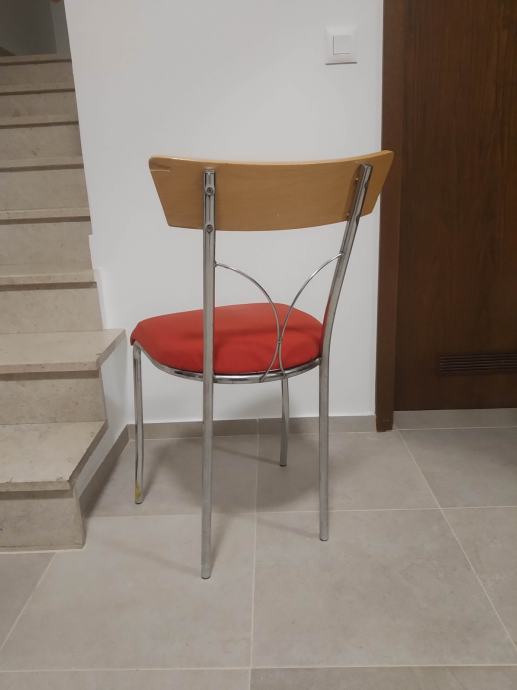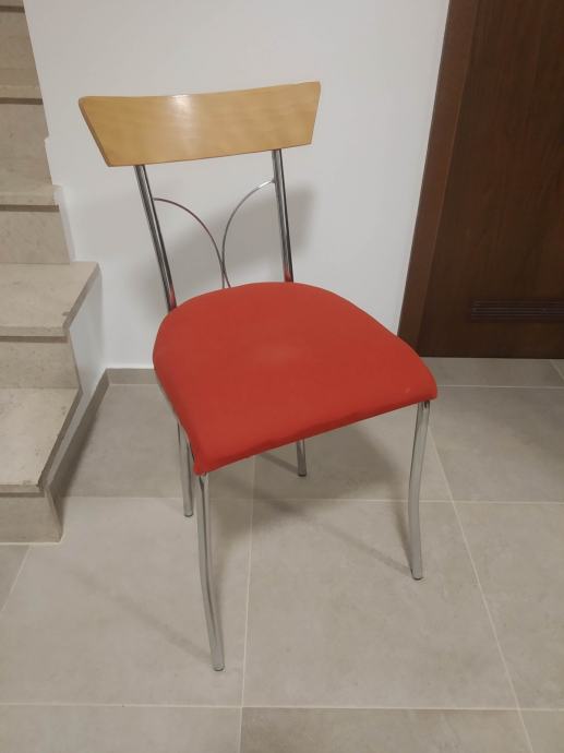 Izdelan iz oblazinjenega sedala, leseno - kovinskega ogrodja. Kovina je kromirana.