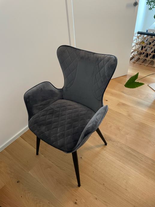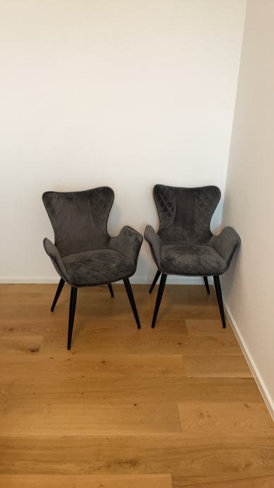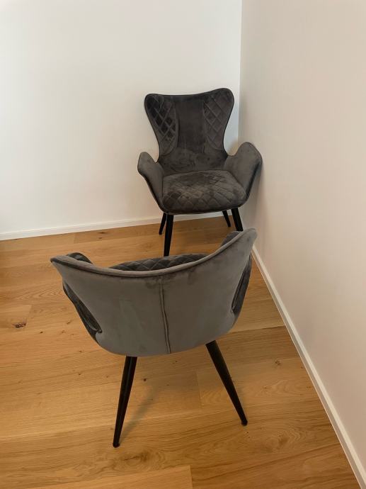 Prodajam, ker se mi barvno tepejo s kavčem. Redna cena enega stola je bila 169€.