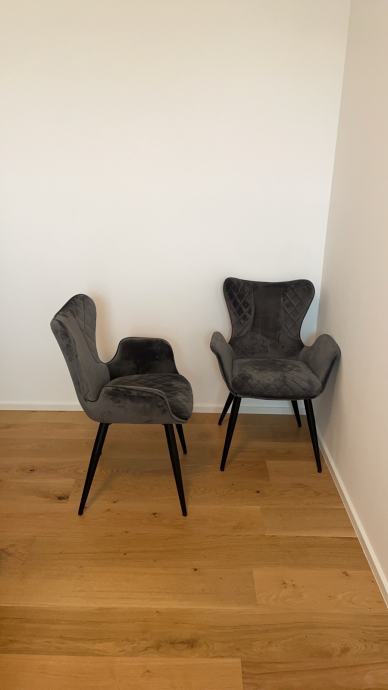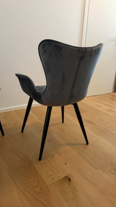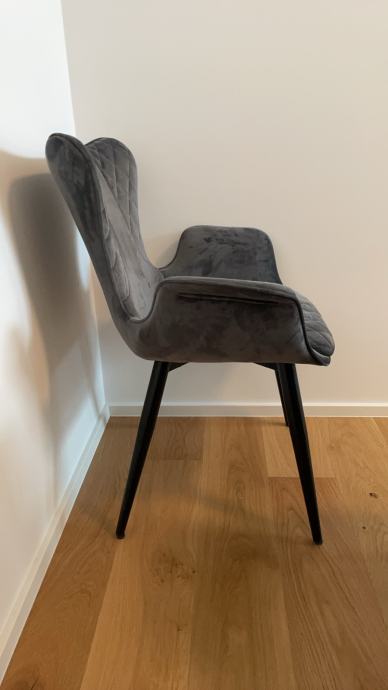 Zelo udobni jedilniški stoli sive (antracit) barve. So zelo lepo ohranjeni, brez prask in poškodb. Sestavljeni so 10 mesecev. Na nekaterih se se sploh še ni sedelo.