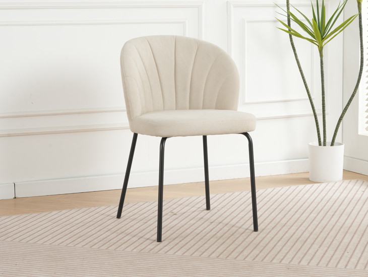 Kuhinjski stol TOMY je oblazinjen v kvalitetni beige tkanini. Močna stabilna kovinska konstrukcija mu zagotavlja vzdržljivost ter stabilnost. Kuhinjski stol TOMY je nameščen na močne črne mat kovinske noge, ki so prašno barvane s debelino profila 1,2 mm. Prav tako je naslon v notranjosti okrašen z gostimi prešiti vzorci, ki zagotavljajo moderen izgled. Stol je zaradi svojega elegantnega naslona zelo udoben za posedanje.