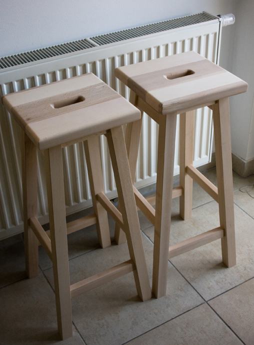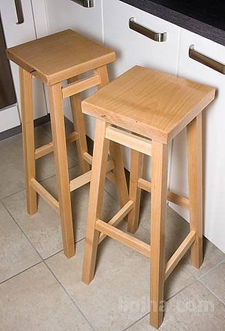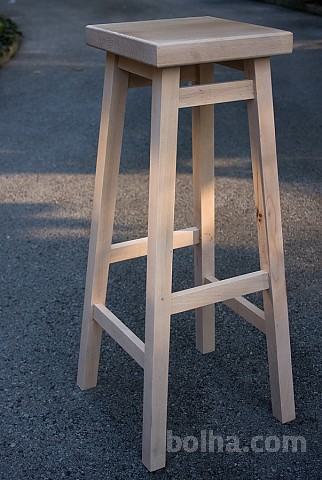 Prodam več novih barskih stolov iz masivnega bukovega lesa, možno tudi iz hrastovega in jesenovega lesa (cena višja). Višina sedišča 62-75cm, širina sedišča 28x28cm, nelakirani, cena 50 eur. Možno tudi pošiljanje po pošti, strošek cca 10eur za 3 stole.