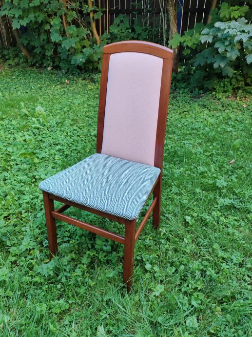Dva stola, masiven les, na novo tapecirana, pobrušena in pobarvana.