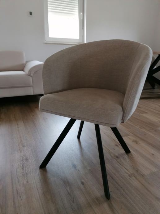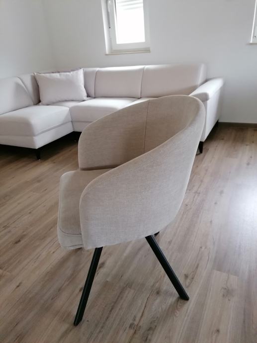 Prodam 4 jedilne stole iz blaga v bež barvi, s kovinskim podnožjem. Stoli so popolnoma novi, se nikoli uporabljeni. Kupljeni v Harvey Normanu.
