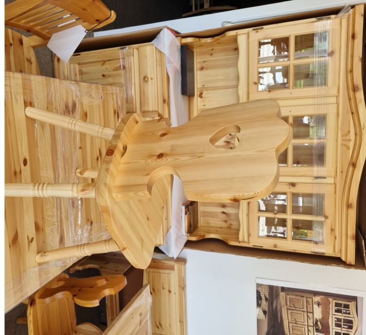 KOMBINACIJE V ISTEM STLU Z BOROVIMI KOTNIMI KLOPMI IN MIZAMI RAZLIČNIH DIMENZIJ, TER KREDENCO