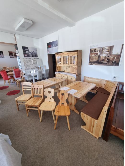 KOMBINACIJE V ISTEM STLU Z BOROVIMI KOTNIMI KLOPMI IN MIZAMI RAZLIČNIH DIMENZIJ, TER KREDENCO