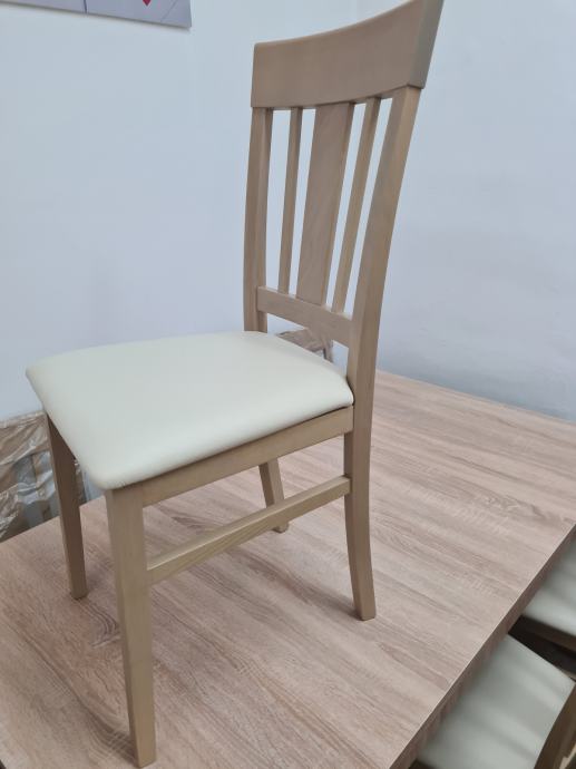 Stol bukev masiva v barvi hrast sonoma z bež sediščem.