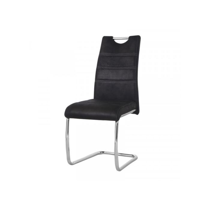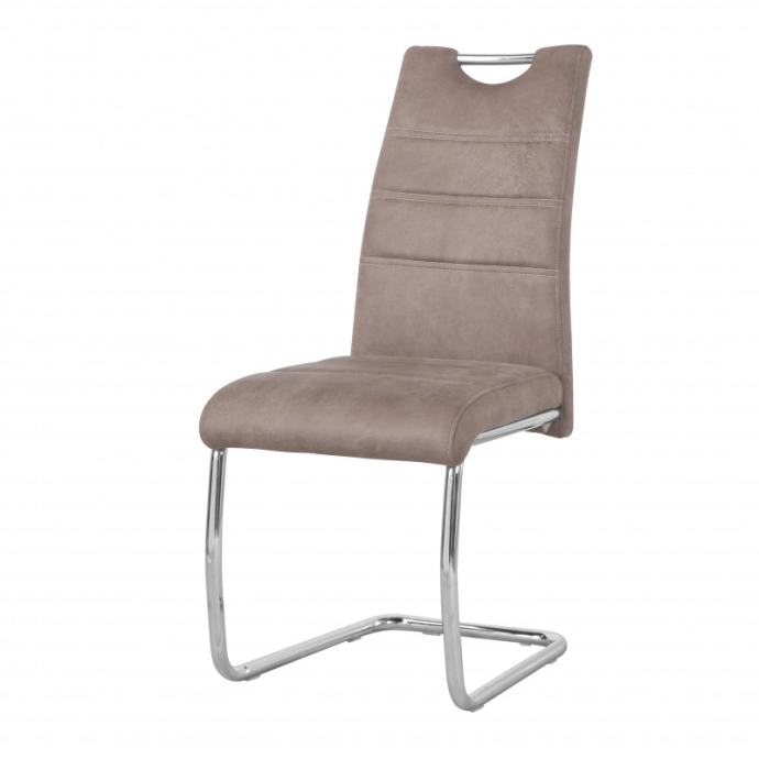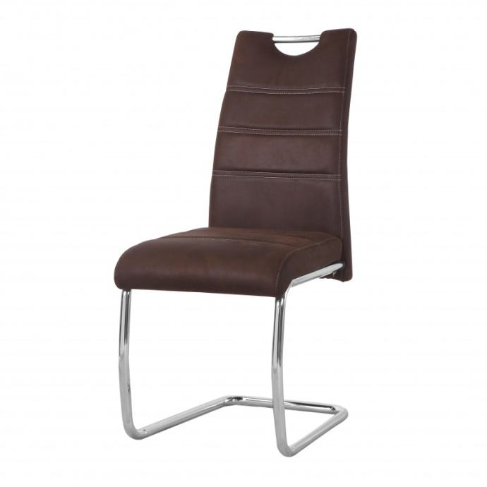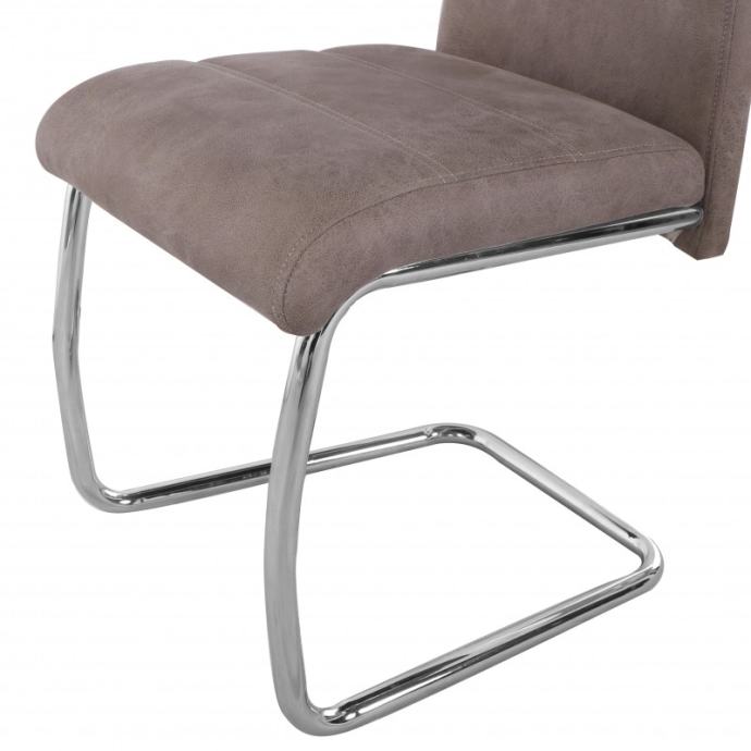 Jedilniški stol Roma s kovinskim ogrodjem v krom izvedbi in oblazinjenjem v mikrotkanino v črni, rjavi ali taupe barvi. Ogrodje je iz okrogle kromirane cevi.