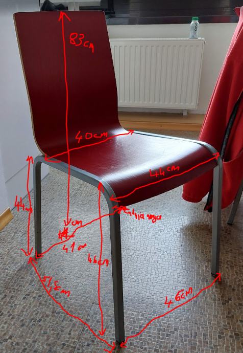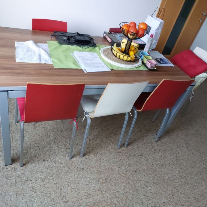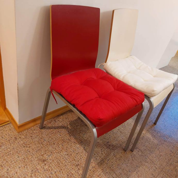 Prodam komplet 6 jedilniških stolov: 2x bele in 4x rdeče barve.