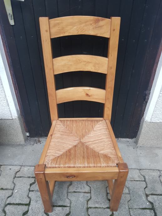 Prodam 3 masivne stole. Dimenzije: višina: 105 cm, širina: 46 cm, globina sedišča: 40 cm.