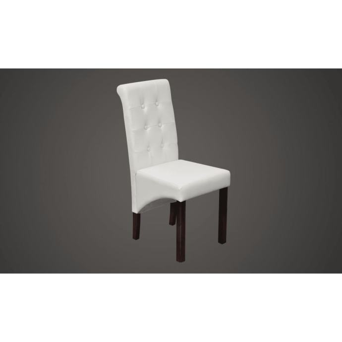 Ta komplet 6 udobnih in velikih jedilnih stolov antične oblike ima ergonomsko oblikovane sedeže in naslonjala. Noge so izdelane iz trdnega lesa v lakirani temno rjavi barvi, vogali pa so zaobljeni za dodatno varnost. Vzdrževanje in čiščenje stolov je preprosto. Sedeži in naslonjala teh jedilnih stolov so oblečena v trpežno sintetično usnje.