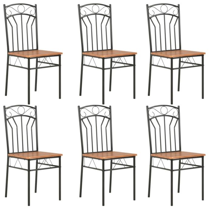Ta komplet jedilnih stolov z elegantnim dizajnom in gladkim barvanim zaključkom predstavlja ikono modernističnega glamurja petdesetih let prejšnjega stoletja. Zaradi tega bo komplet odličen dodatek za vašo jedilnico ali kuhinjo. Ti stoli v industrijskem stilu so izdelani iz 15 mm debele plošče iz mediapana in visokokakovostnega jekla, zato so izjemno stabilni in vzdržljivi. Stoli so tudi enostavni za čiščenje zaradi gladkega barvanega zaključka. Stoli so tudi ergonomsko zasnovani za dodatno udobje pri sedenju. Paket vsebuje 6 jedilnih stolov.