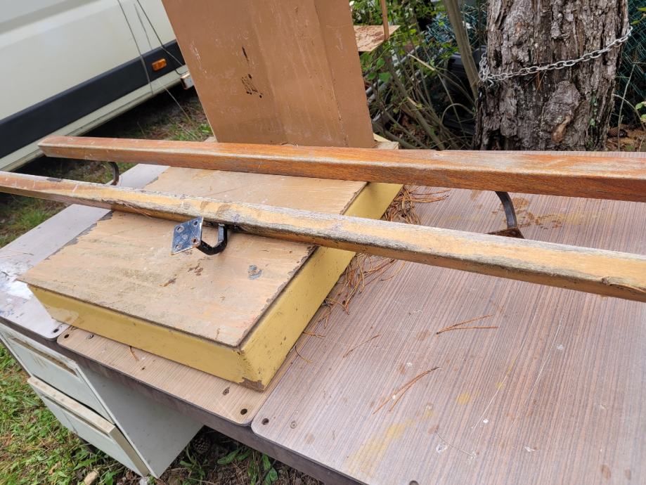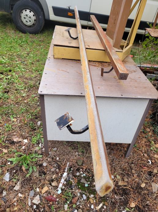 Lesena opora za ob stopnicah vključno z nosilci. 2 kosa, daljši in krajši.
