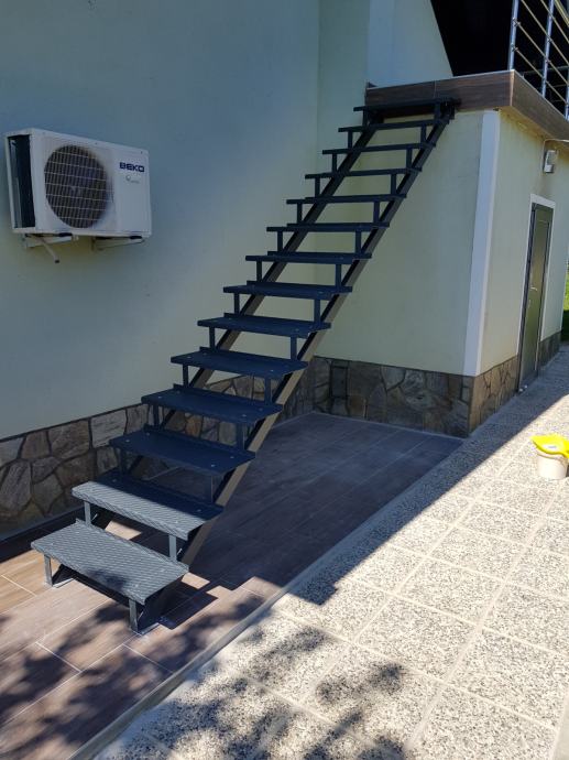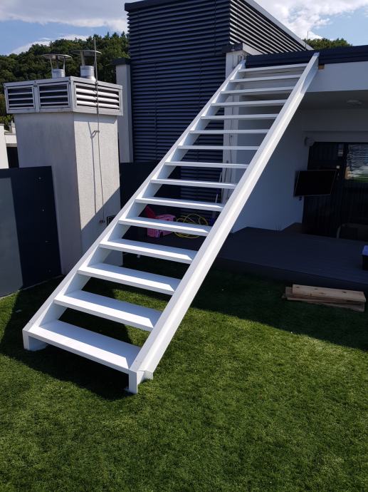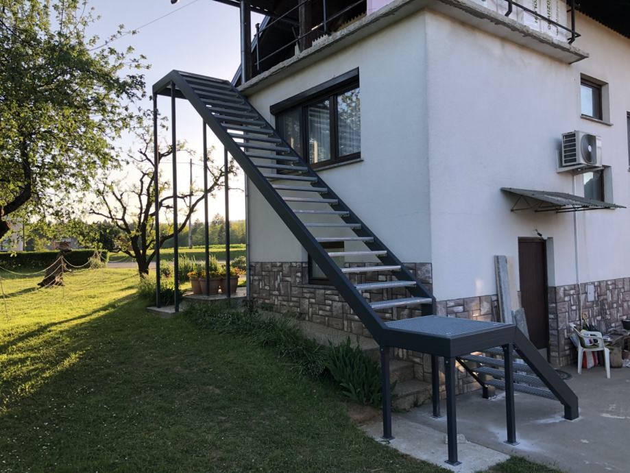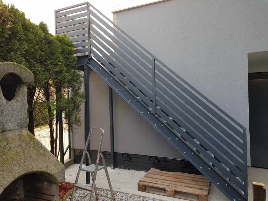 Kovinske stopnice izdelam po željah in zahtevah stranke. Stopnice so lahko v različnih izvedbah. Stopnice so lahko vroče cinkane in prašno ali mokro barvane po želji stranke.