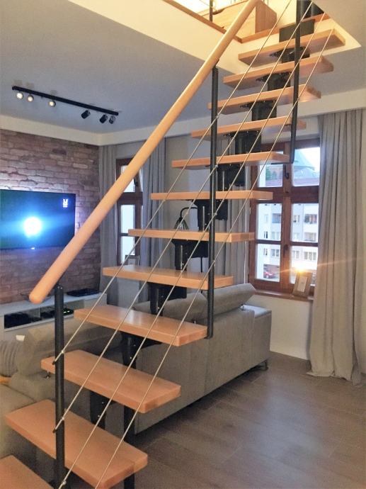Modularne stopnice DO-BO-M so Vam na voljo v ravni izvedbi ali pa z zavojem. S tem so popolnoma prilagodljive Vašim potrebam. Kovinska nosilna konstrukcija je prašno lakirana. Nudi kvalitetno oporo, trajnost in trpežnost stopnic. Same stopnice so izdelane in bukovega lesa in lakirane, kar Vam prinese lesk, eleganco ter trajnost in odpornost v Vašem domu.