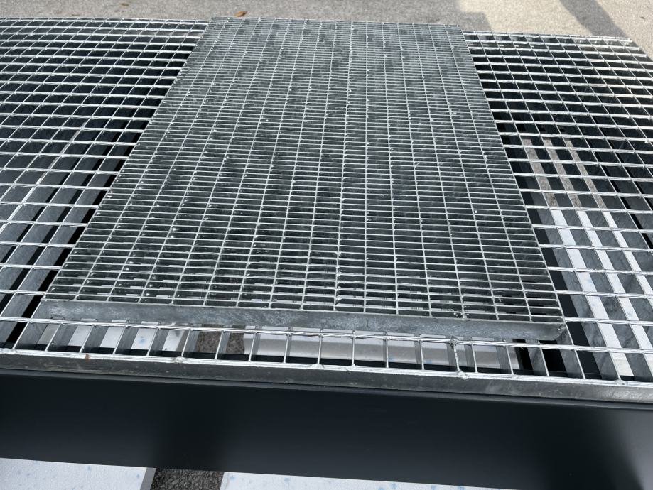 Pohodni podesti, pohodne mreže in stopniščne rešetke (KOZ - SOZ) za zgornjo in bočno pritrditev, v široki paleti različnih dimenzij. Velikost okenca 34*38 oziroma po naročilu tudi 33*11 ali 33*33.