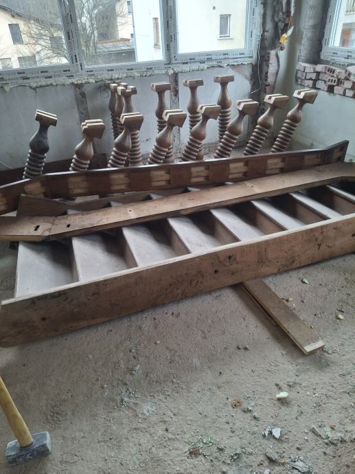 Prodam hrastove stopnice.Visina stopnic 15 cm dolžina 30 cm 9 stopnic.Skupna dolžina je 290 cm.Zraven je še ograja z levim podestom. Tel.031 542 602